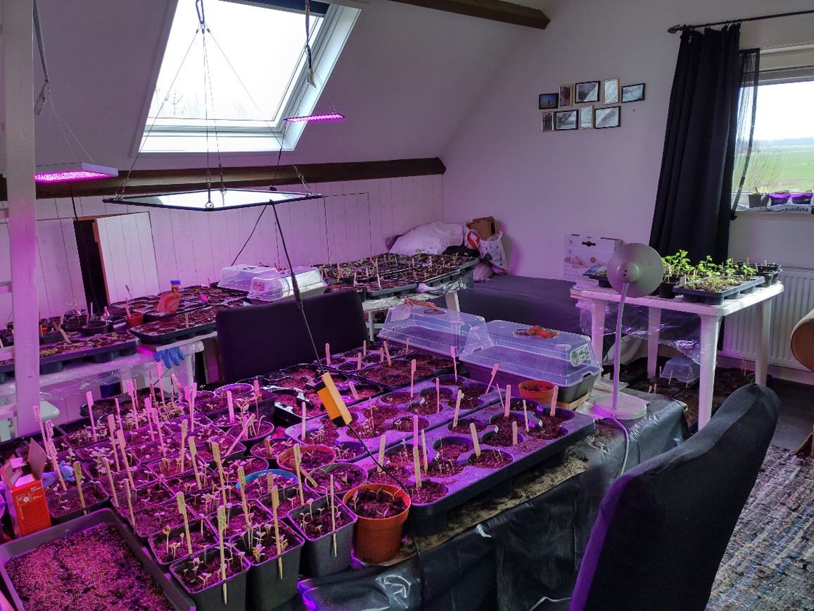 Afgelopen jaren hebben we diverse fruit en voedselbos struikjes en boompjes verzameld. Eerst o.a. in potten. In 2024 zijn we in begonnen om oma’s landje om te vormen tot een biodiverse fruit, groente en bloementuin. We zijn een soort sociale deeltuin, o.a. jonge vrouwen helpen ons bij het werk, betrekken hun kindjes erbij en plukken bijvoorbeeld boontjes, aardbeitjes een bosje bloemen voor op tafel. Ook telen we dahlia’s om boeketten uit te delen bij lief en leed en voor mensen die zich vrijwillig inzetten voor anderen. Verwacht bij ons geen perfect onderhouden tuin. We genieten van het bezig zijn en verwonderen ons over alles wat groeit, bloeit en zoemt. We zijn te volgen op insta/ facebook: Ontdek.de.tuin. |
