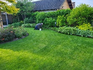 De tuin is ca. 250m2 groot en zowel voor- als achtertuin zijn aangelegd met ronde vormen. Er staan veel insecten- en vogel-vriendelijke planten in. Aan 3 kanten is een zitplek gecreëerd, zodat je steeds een ander zicht op de tuin hebt. Ook is er een kleine moestuin met wat fruitplanten.