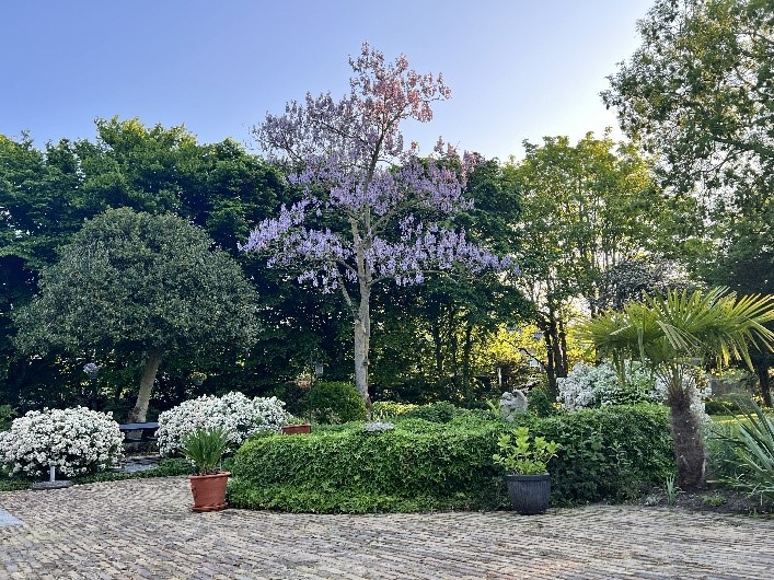 Op een mooi en rustig plekje hier in Heinenoord ligt de klassieke pastorietuin. Deze tuin is gegroeid uit liefde voor de natuur met de prachtige kleuren geel en paars. Beide vaders van de eigenaren hadden tuinieren als hobby en hebben de liefde voor de natuur doorgegeven. Arjan en Anita zijn ook tuinreizen gaan maken naar bijvoorbeeld Sissinghurst in Engeland en hebben rondgedwaald in de Normandische tuinen in Frankrijk. Zo deden zij weer inspiratie op voor hun eigen tuin. Door de jaren heen is de tuin veranderd, maar de ziel van de tuin bleef hetzelfde. Met behulp van Alex de Jager kreeg de beplanting een nieuwe impuls. Nieuwe planten uitgezocht en die zijn herhaald, zodat er rust ontstond. Buxussen eruit en taxussen erin, ook mooie paadjes gemaakt waar je rustig doorheen kunt wandelen. Achter in de tuin is meer gras aangelegd voor meer symmetrie, maar alles met respect voor wat er was. En dan nog die kleurrijke Dahlia’s, die voorgetrokken worden en de mooie Agapanthussen, zij hebben het hart van de eigenaren gestolen. Elk jaar schitteren ze in volle bloei. Er is ook een kleine wereld te vinden in de vorm van een kas vol met cactussen. Dit is de grote hobby van Arjan sinds vijftig jaar. Groot en klein, oude en bijzondere soorten geven een aparte sfeer. Het is prachtig om dit te zien. Volgens Arjan geeft het werken in de tuin veel ontspanning voor hoofd en lijf en is het volop genieten van dit alles. En aan het einde van de dag………samen voldaan uitrusten op de favoriete boombank. |